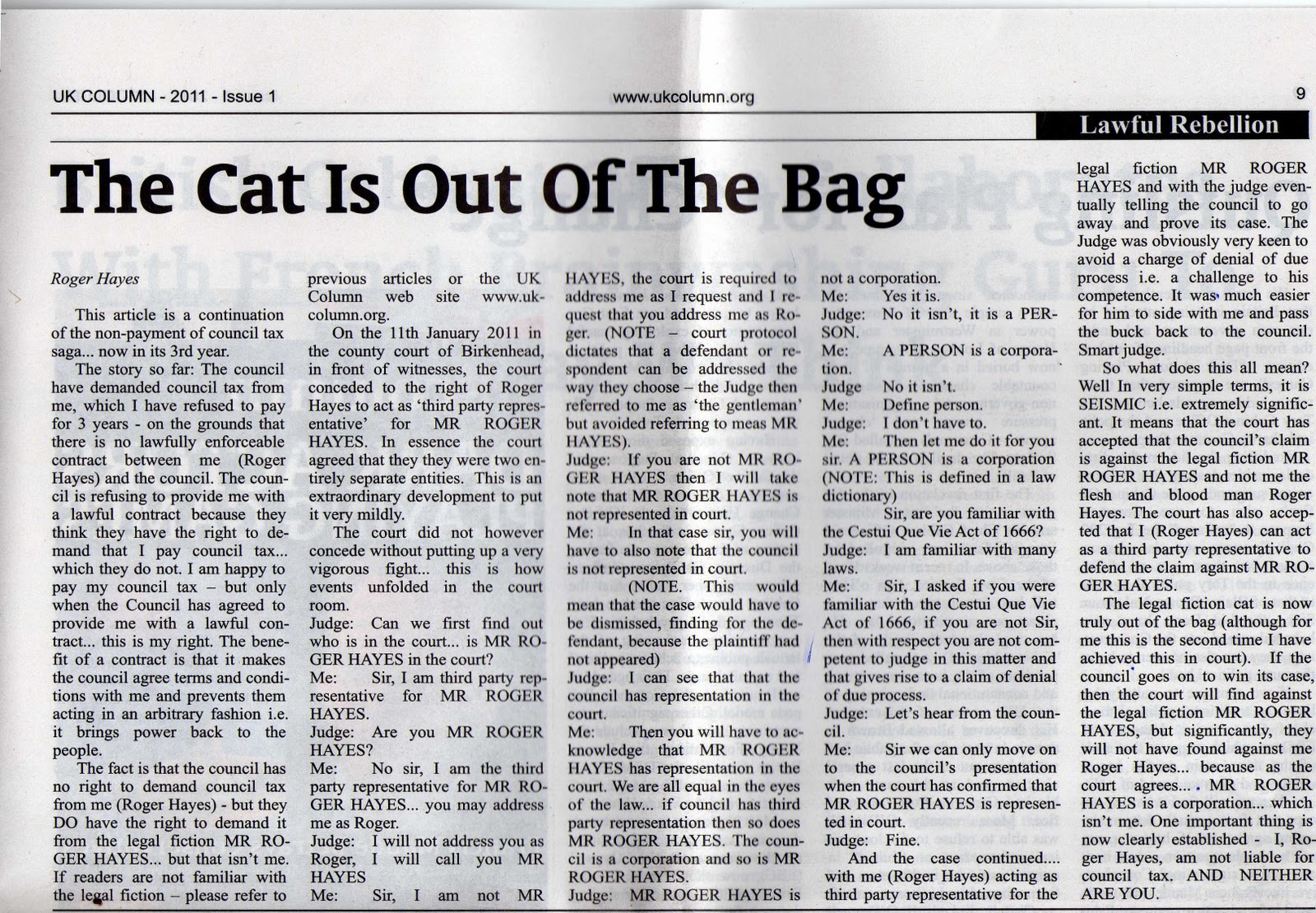 Having followed the good captains progress on rebellion & freeman business I was absolutely delighted to read the attached article where fellow freedom fighter Roger Hayes has taken the court system apart as regards that horrible yearly debit known as Council Tax.